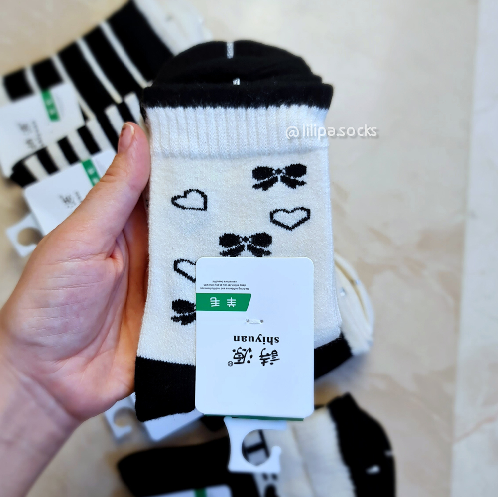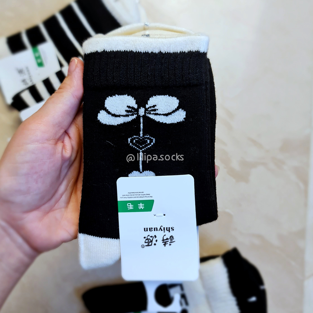 جوراب ساقدار قلبی سیاه و سفید زنانه – تکی و پک 5 تایی