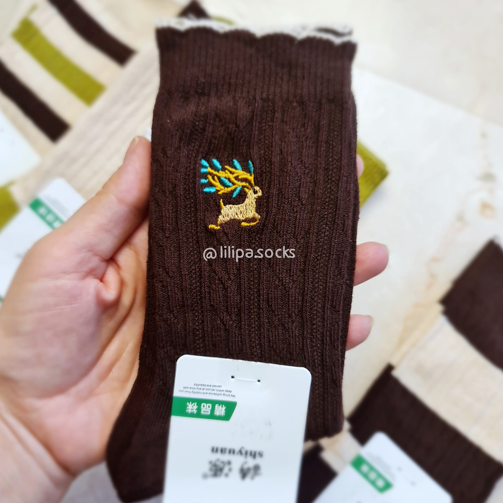 این جوراب ساقدار با طرح گلدوزی گوزن مناسب برای روزهای پاییزه. با 5 تا طرح خوشگل و شیک 🥰🫠